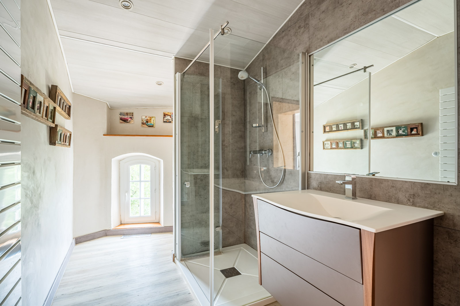 Elle comprend, au rez-de-chaussée, un spacieux salon avec cheminée, une cuisine de 27 m2 et une cuisine d'été ou d'hiver équipée d'un four à bois, ainsi qu'une suite parentale.