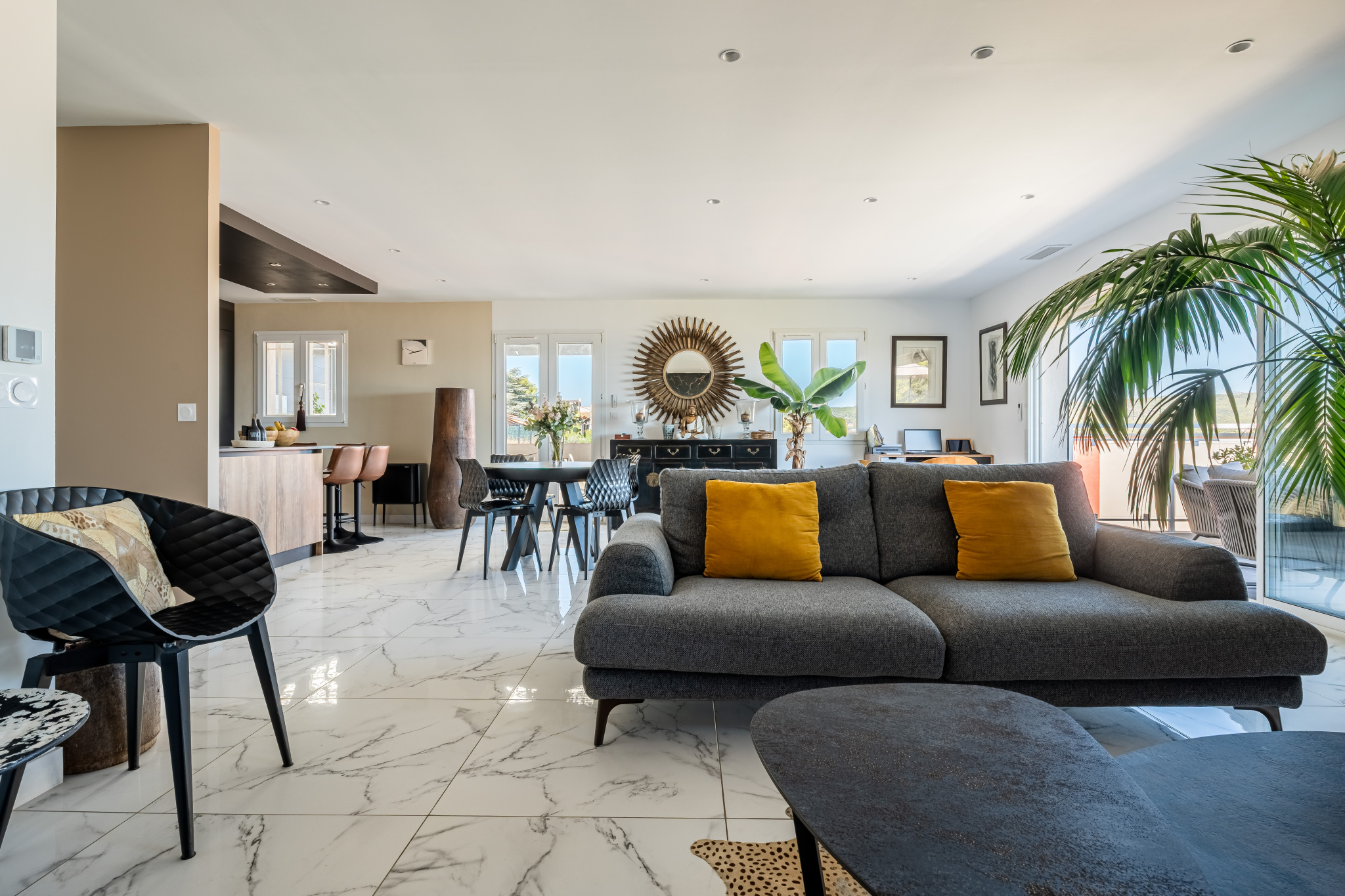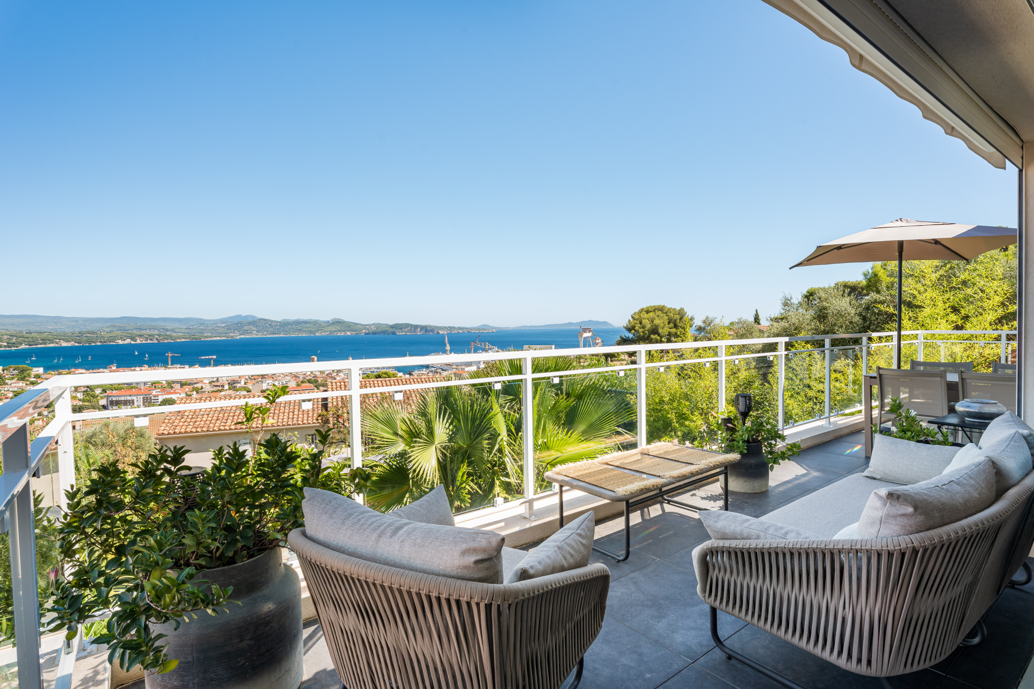 CHAIX IMMOBILIER vous présente, nichée dans un environnement rare et privilégié, au calme absolu, cette villa de standing entièrement rénovée en 2022 offrant un cadre de vie exceptionnel alliant confort contemporain, élégance et vues à couper le souffle..