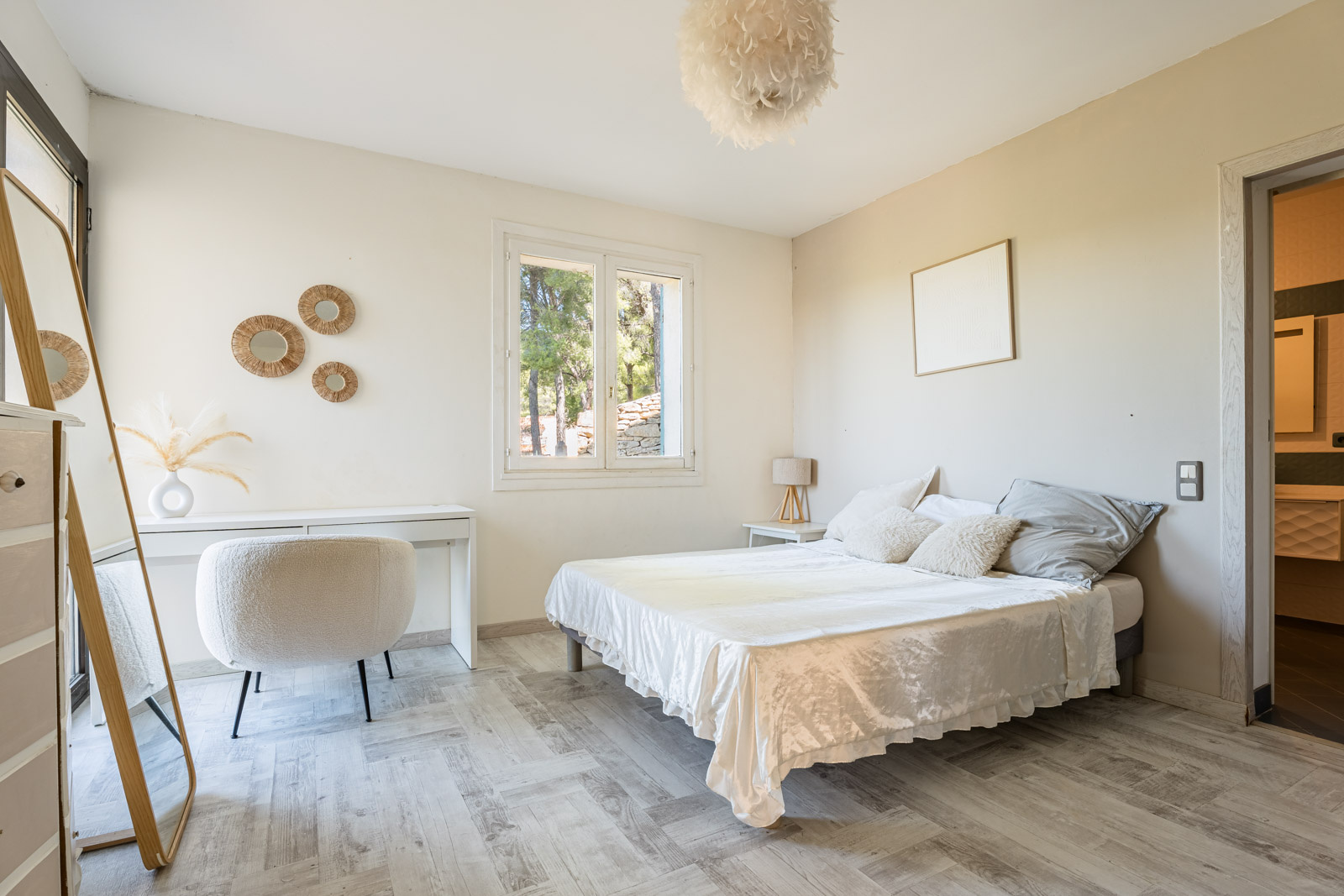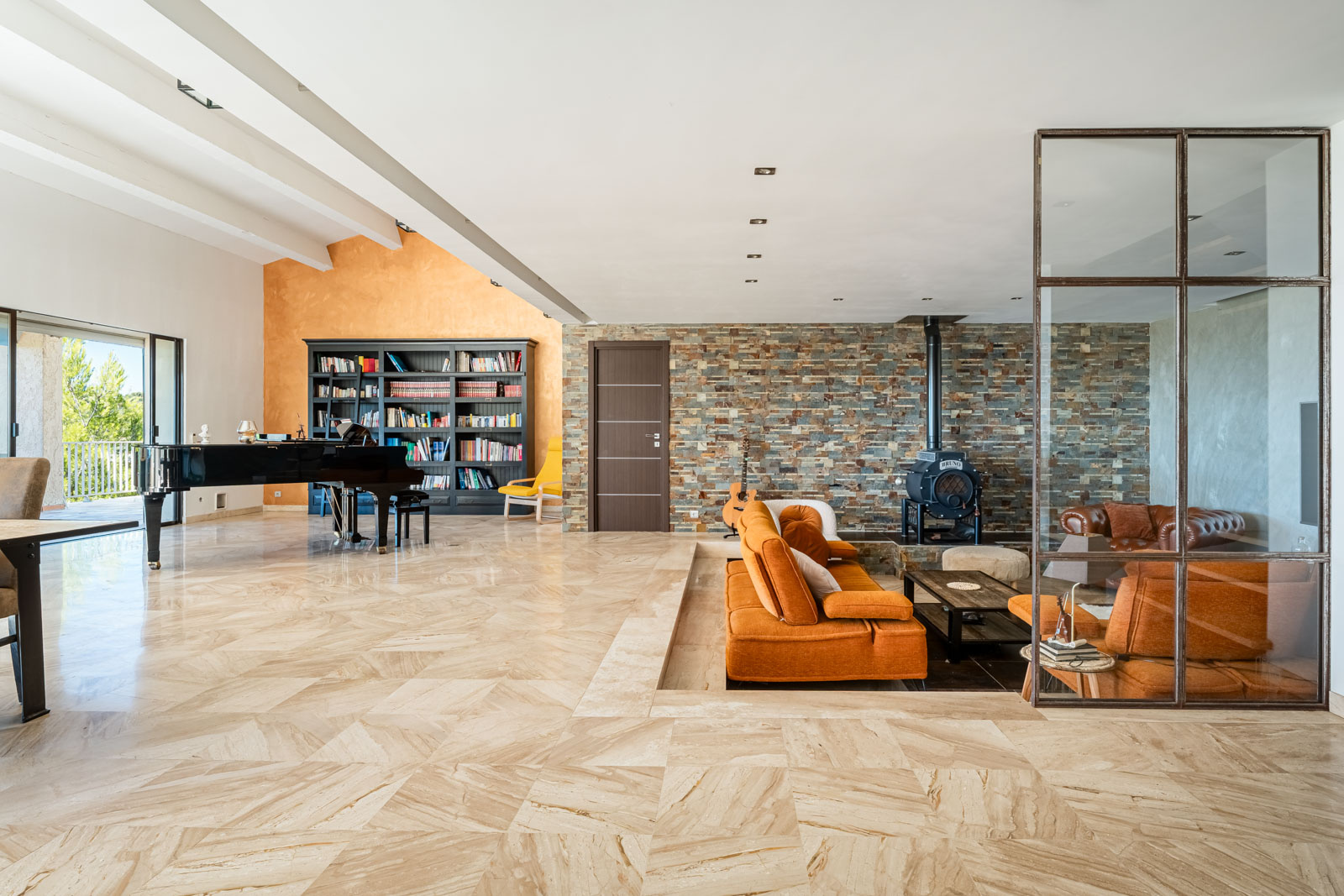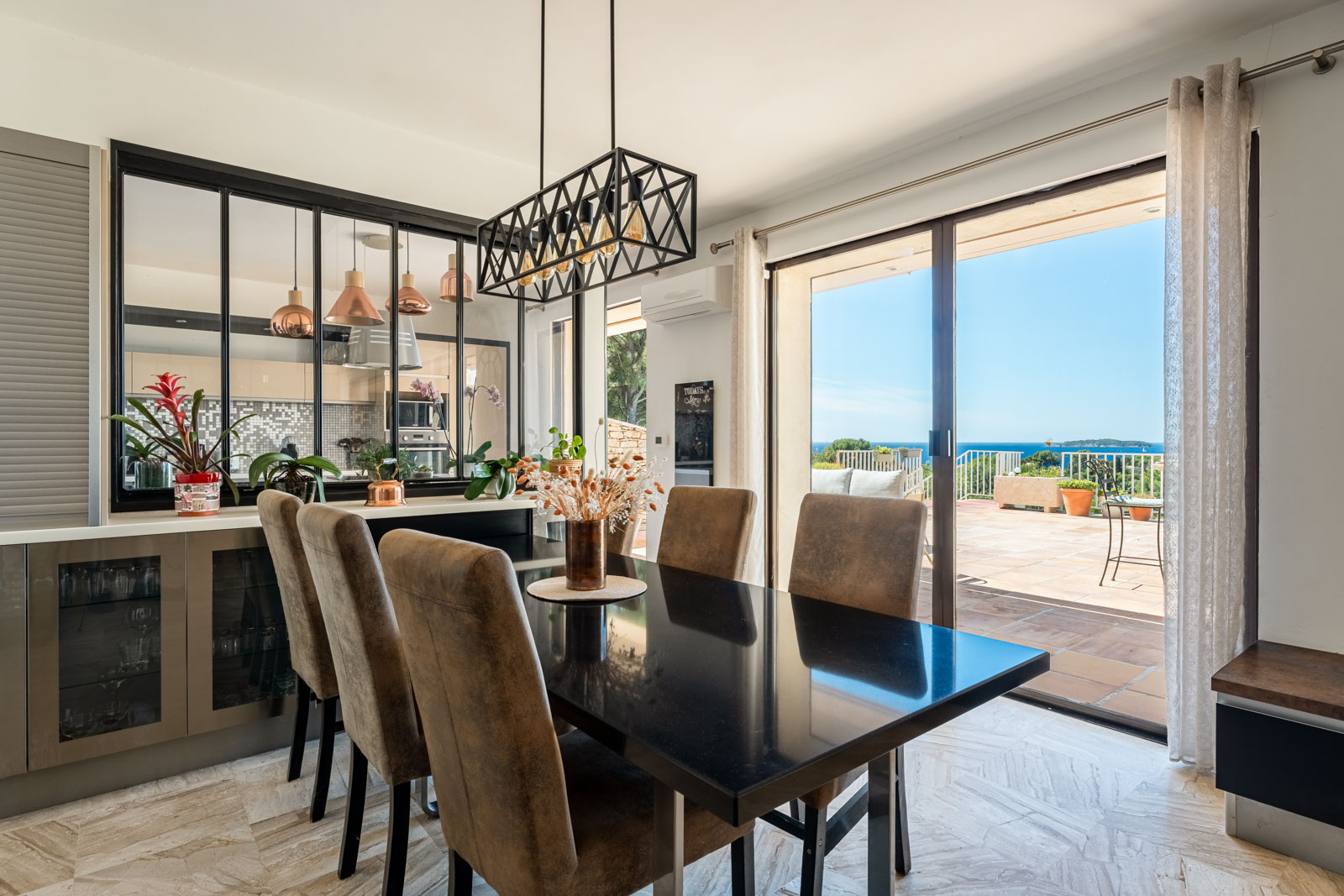 La maison dispose de plusieurs suites, d’un salon avec cheminée, d’une cuisine ouverte, d’un bureau indépendant, ainsi que de pièces polyvalentes en rez-de-jardin. De grandes terrasses face à la Méditerranée, une piscine, un terrain de tennis et un garage complètent ce bien. Un cadre rare et privilégié alliant volume, confort et panorama d’exception.